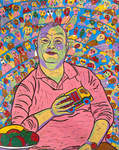 2001Portret van Kitling Jordens, beeldend kunstenaar te Tilburg , inosnede op doek 30 x 40 cm