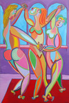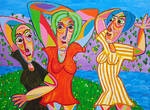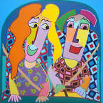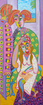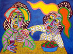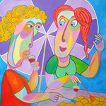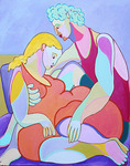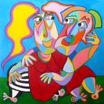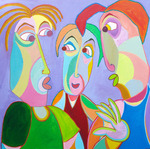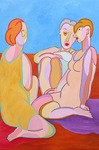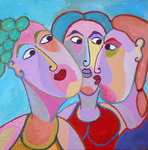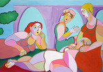 2016Kubistisch schilderij, vrouwen op de bank, gezellig kletsen over van alles en nog wat