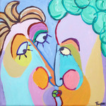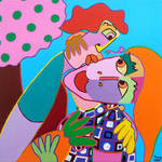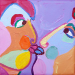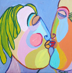 2015De kus, figuratief kubistische schilderij, genieten van een tedere kus