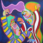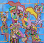2016Kubistisch schilderij, acryl op linnen, samen muziek maken