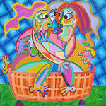 2009Een kussend paar zit lekker buiten in de hot tub te badderen Het schilderij Tobbekus is te huur voor 17,50 Euro per maand
