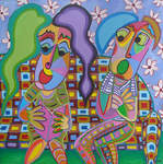 2018Schilderij, acryl op linnen, in moeilijke tijden bij elkaar terecht kunnen, goede vrienden, steun bij elkaar vinden.