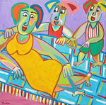2008Een aantal dames en heren zijn in het zwembad heerlijk met elkaar in gesprek Het schilderij Na het zwemmen 2 is te huur voor 31,50 Euro per maand