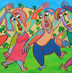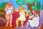 2013Schilderij Vrouwen onder elkaar van Twan de Vos, 4 vrouwen in gesprek in de natuur